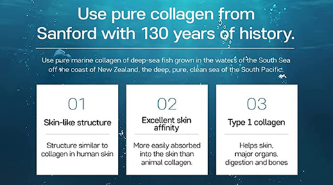 La maschera solubile al collagene utilizza collagene marino a piccole molecole e ad assorbimento rapido, proveniente dalle acque profonde del Pacifico meridionale al largo della costa della Nuova Zelanda, per lasciare la pelle immediatamente morbida e rimpolpata.